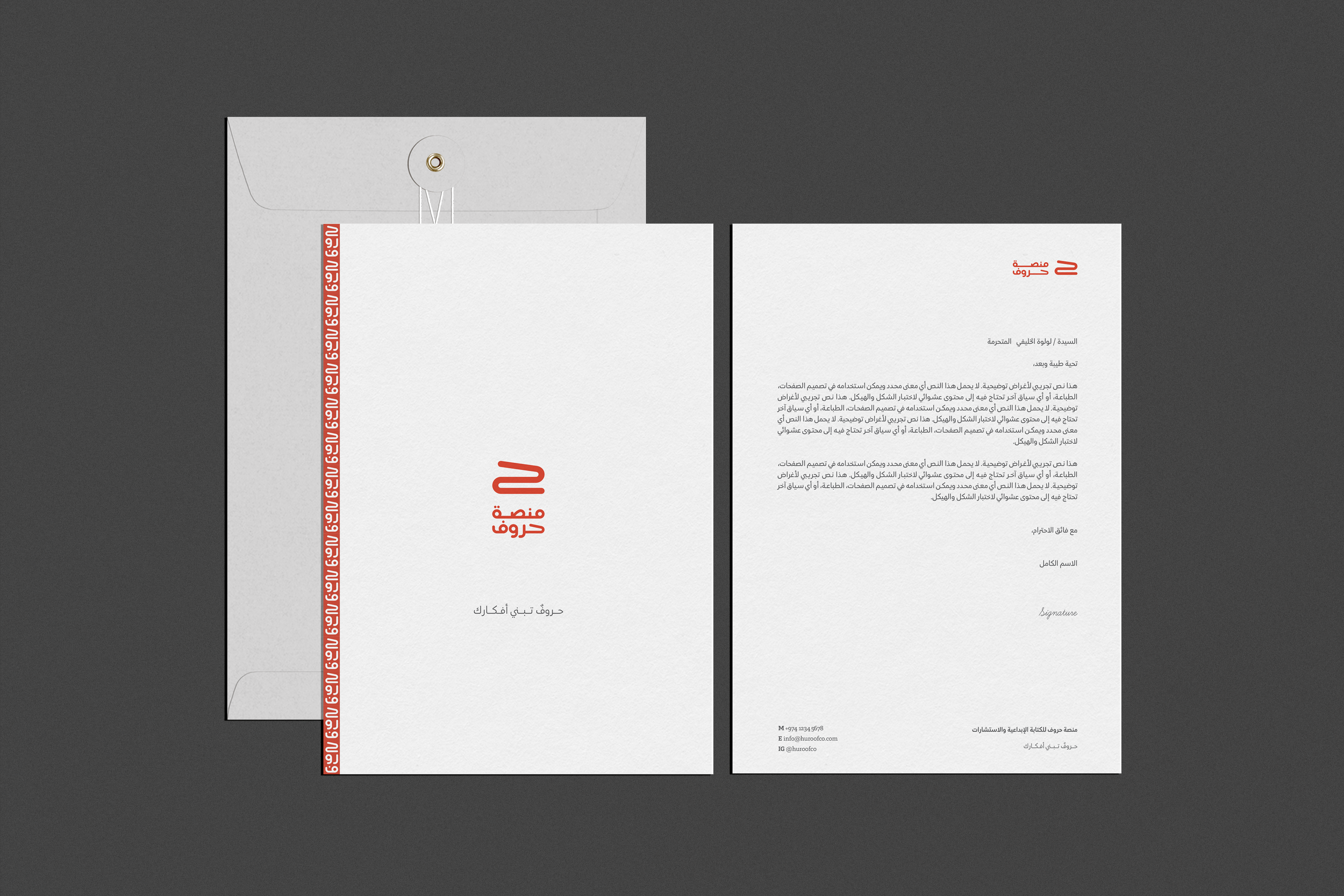 Huroof is a Qatari service platform specializing in creative and marketing content design and writing, as well as the development of innovative programs, campaigns, and consultations. The logo symbolizes an open book and incorporates the Arabic letter “ح” (ḥāʼ), with a customized type to reflect the brand’s unique identity.